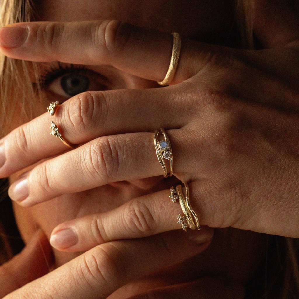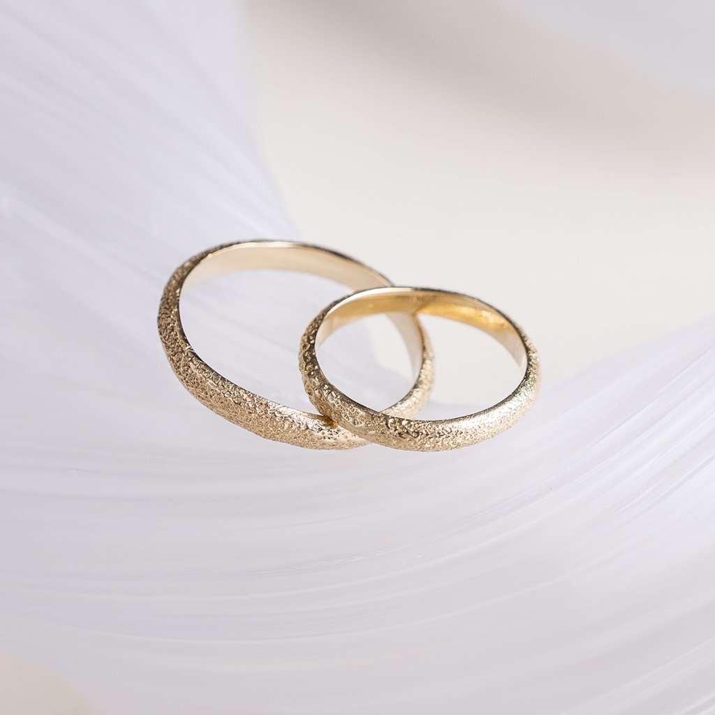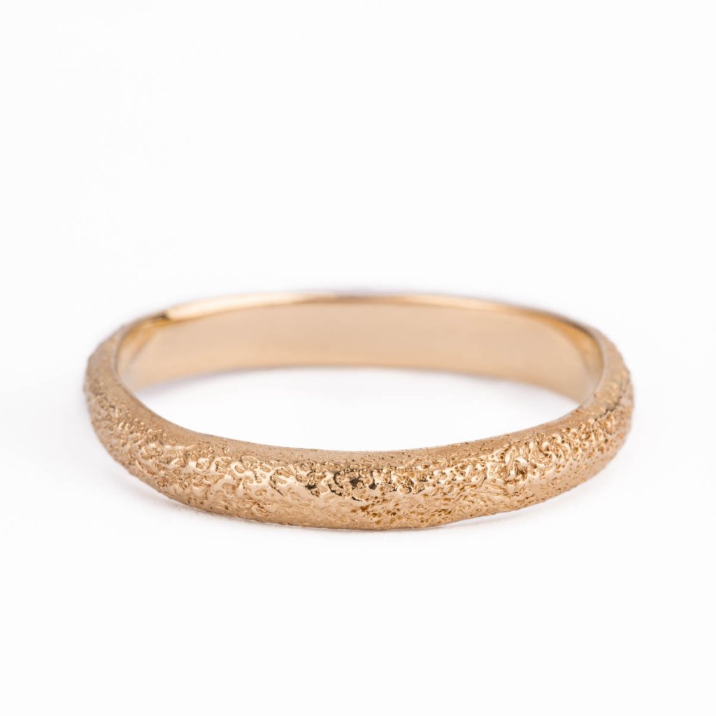 Dámský snubní prsten s jemně texturovaným povrchem inspirovaným pouštní krajinou.Zrnitá struktura evokuje přirozenou erozi formovanou časem a neustálým pohybem a zanechává na každém prstenu osobitý charakter i jemnou stopu jedinečnosti.