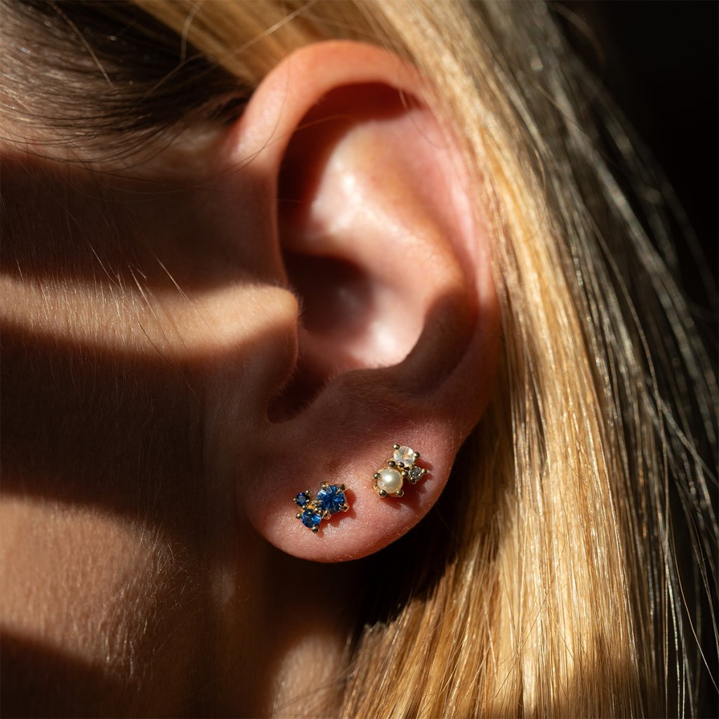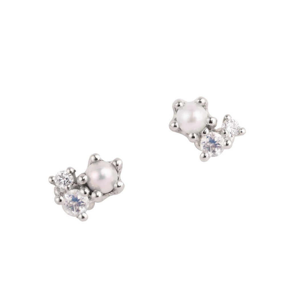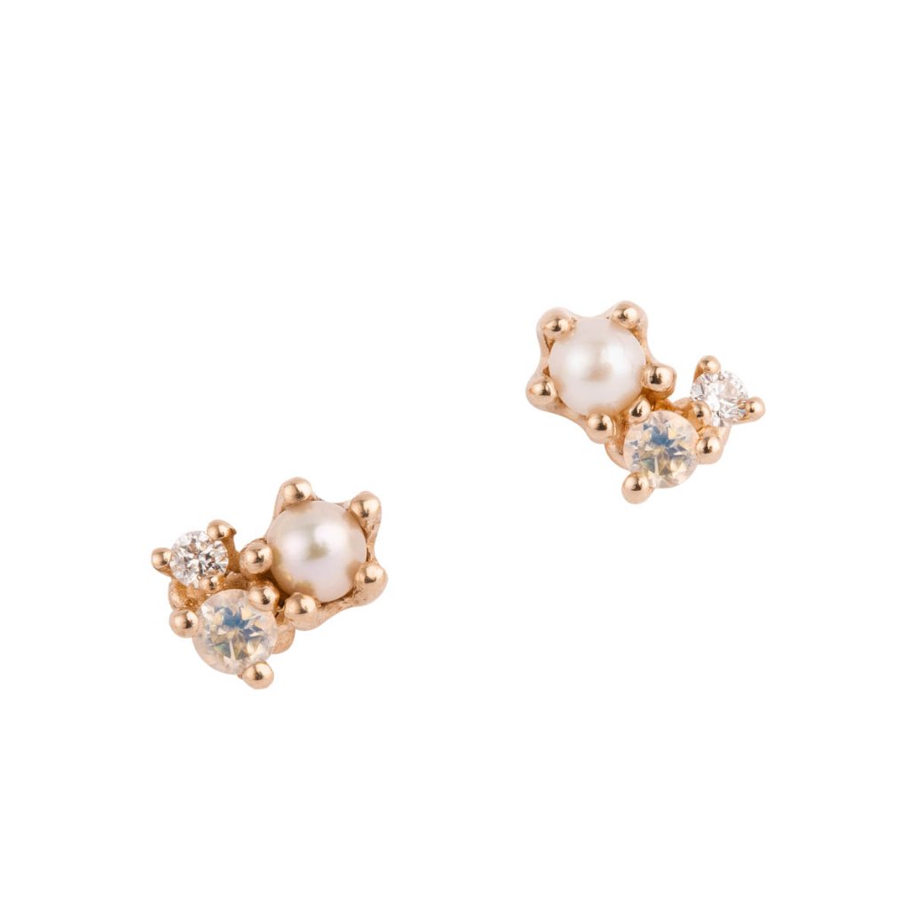 Jemná kompozice kamenů, v nichž se setkává hedvábný lesk perly, proměnlivé odlesky měsíčního kamene a třpyt diamantu. Při každém pohybu se barva měsíčního kamene jemně proměňuje a zachycuje světlo v nových odstínech.