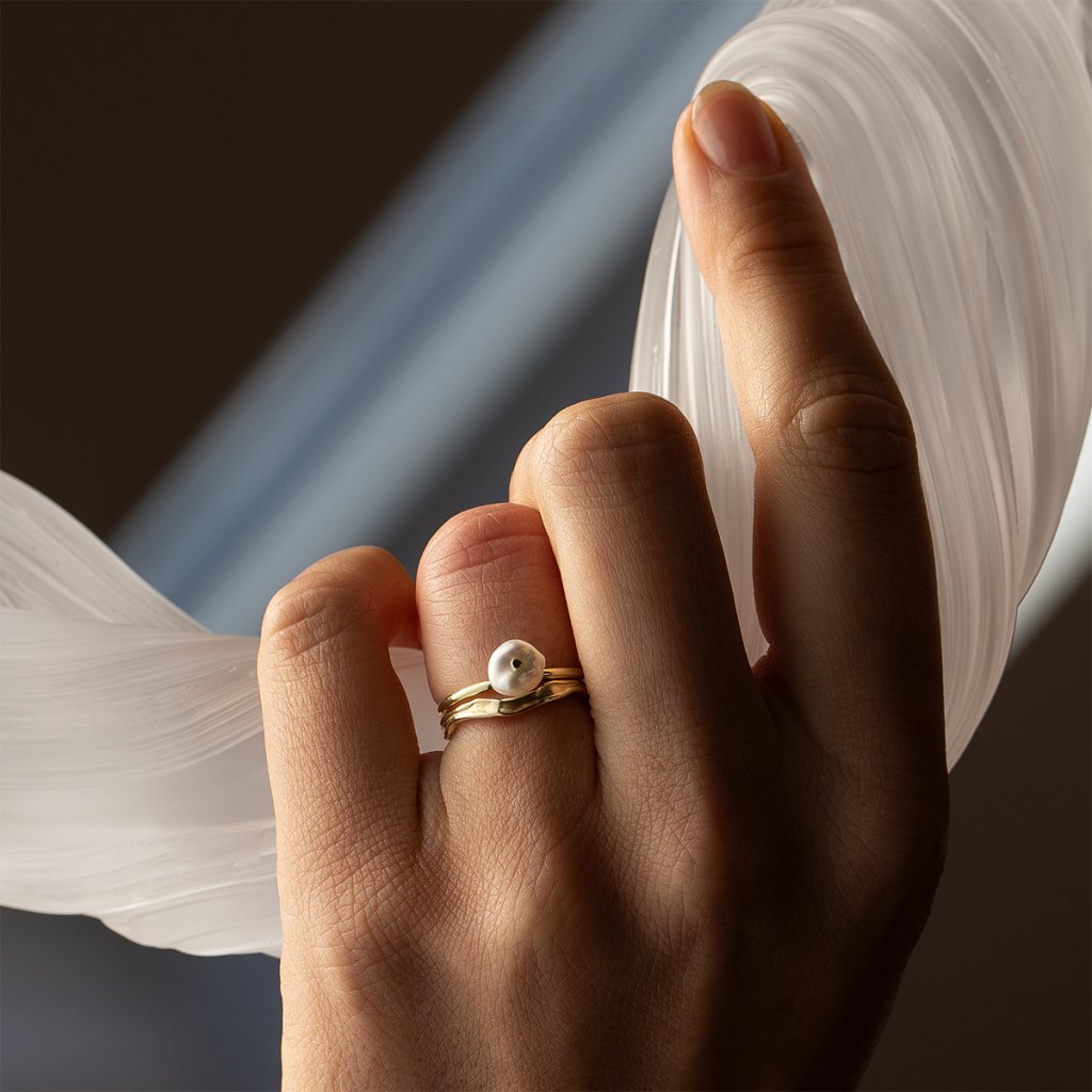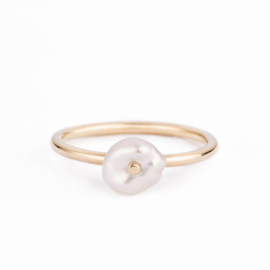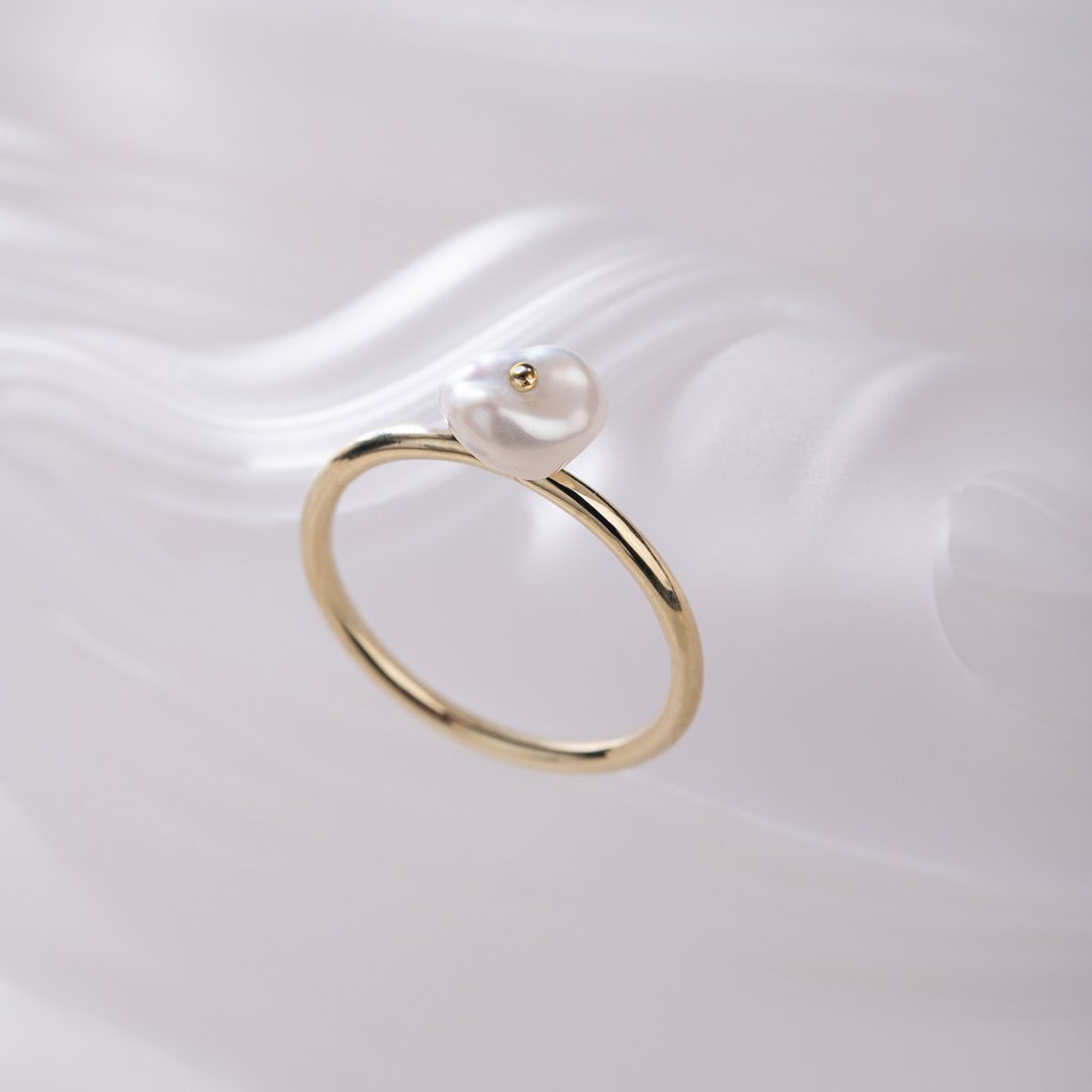 Keshi Pearl prsten je jemný, ale výrazný kousek, kde nepravidelnou krásu keshi perly podtrhuje drobný detail ze zlata. Díky své subtilní eleganci vynikne samostatně i ve vrstvení.